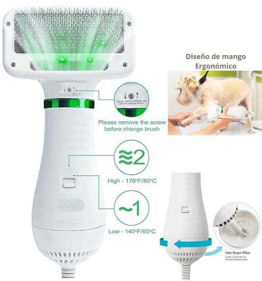 Cepillo Secador de pelo para Mascotas 2 en 1